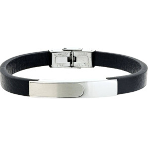 BRACCIALE CM 22 UOMO IN PELLE E ACCIAIO MM 7