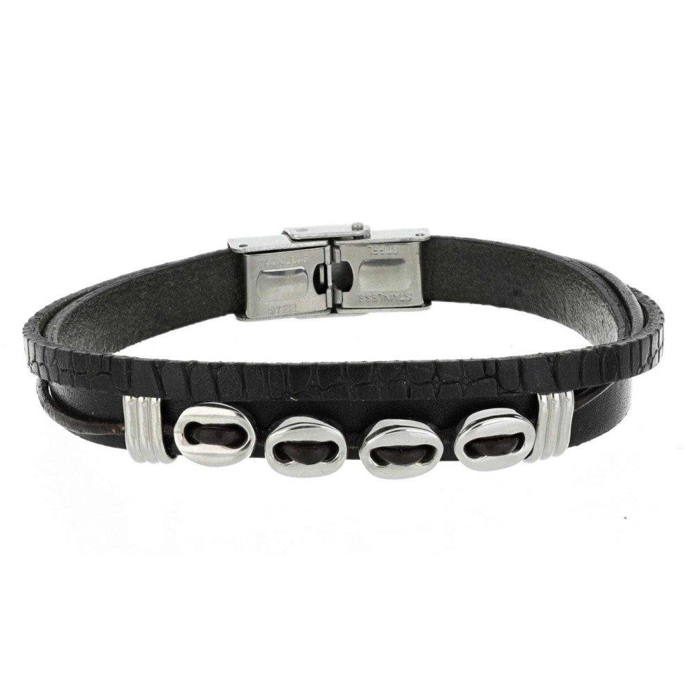 BRACCIALE UOMO CM 21 IN PELLE E ACCIAIO