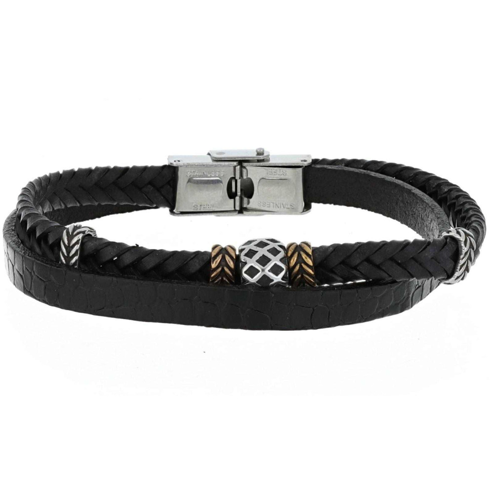 BRACCIALE UOMO CM 21 IN PELLE E ACCIAIO