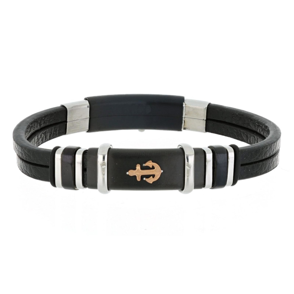 BRACCIALE UOMO CM 21 IN PELLE E ACCIAIO