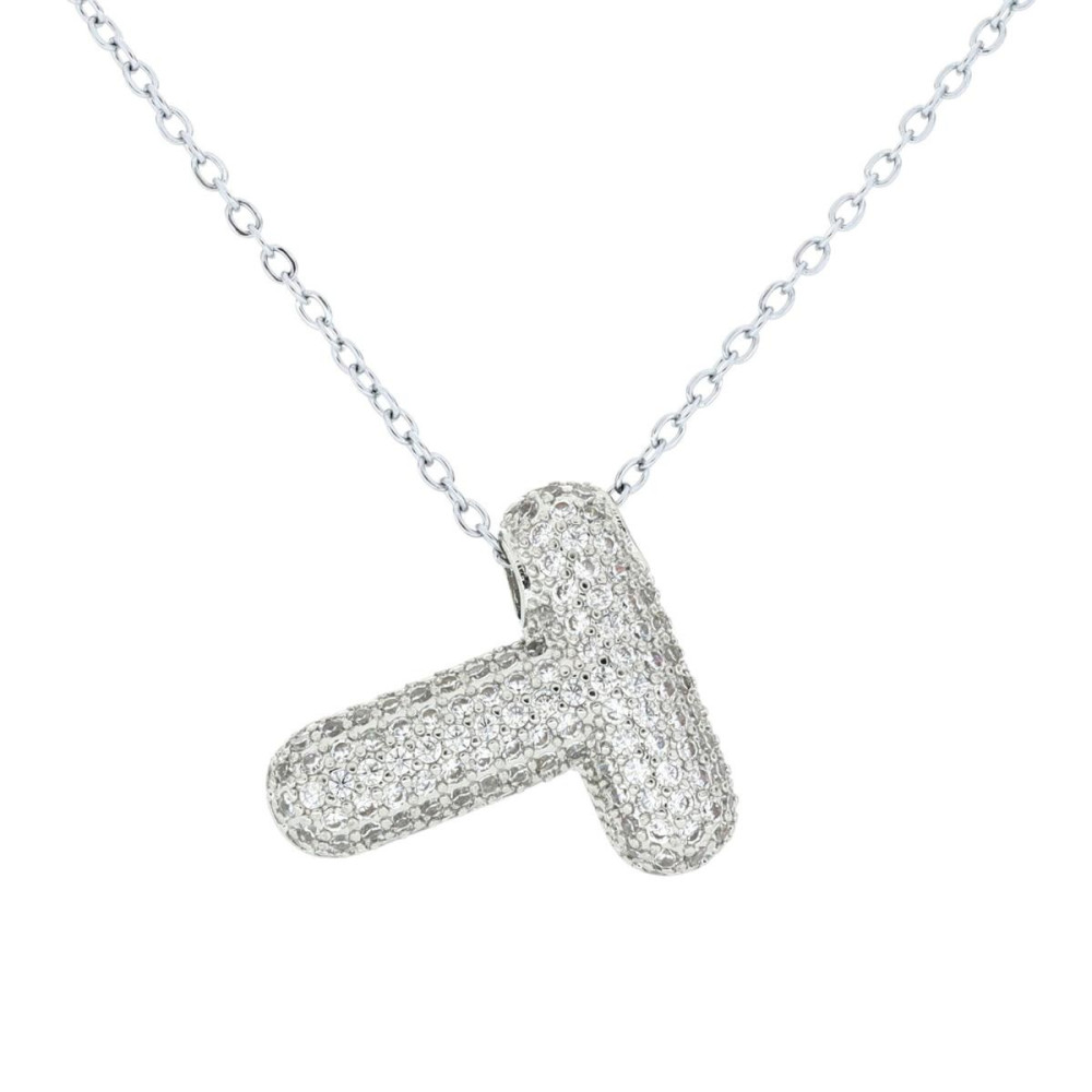 PENDENTE MM 22X21 LETTERA T IN OTTONE CATENA IN ACCIAIO CM 45+6