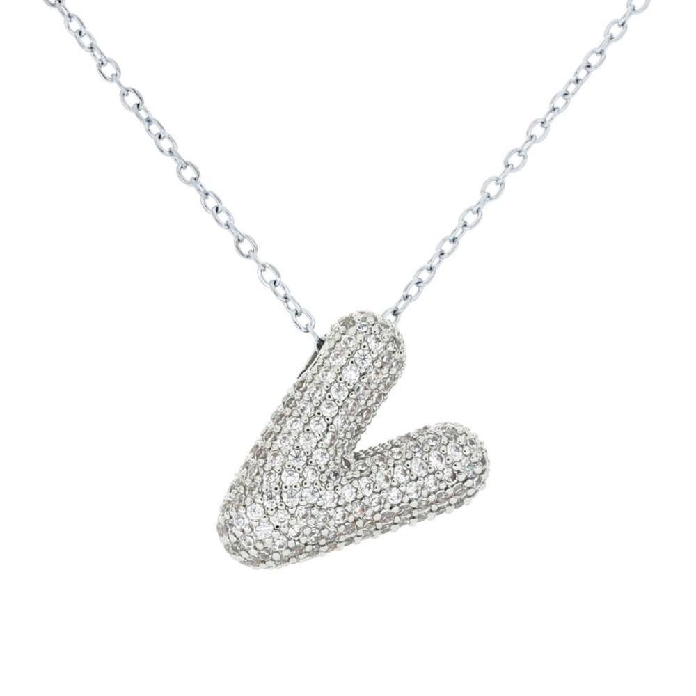PENDENTE MM 21X17 LETTERA V IN OTTONE CATENA IN ACCIAIO CM 45+6