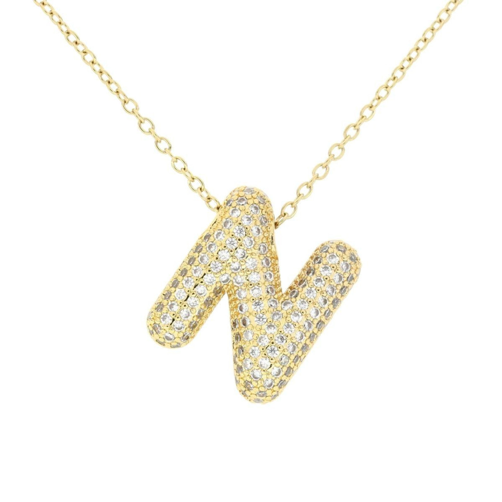 PENDENTE MM 21X17 LETTERA N IN OTTONE CATENA IN ACCIAIO CM 45+6