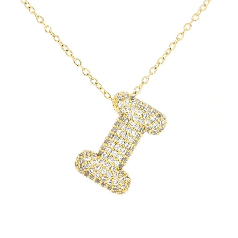 PENDENTE MM 21X17 LETTERA I IN OTTONE CATENA IN ACCIAIO CM 45+6