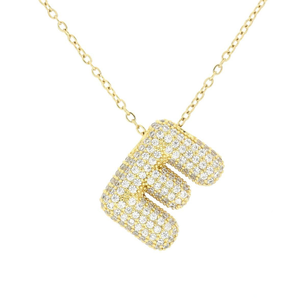 PENDENTE MM 21X17 LETTERA E IN OTTONE CATENA IN ACCIAIO CM 45+6