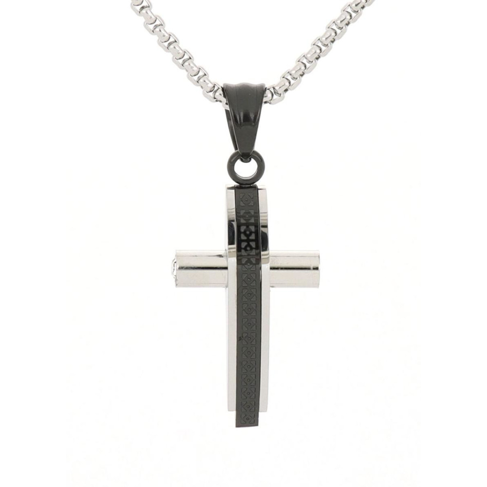 PENDENTE UOMO IN ACCIAIO CON CROCE CM 3X4 CATENA CM 50