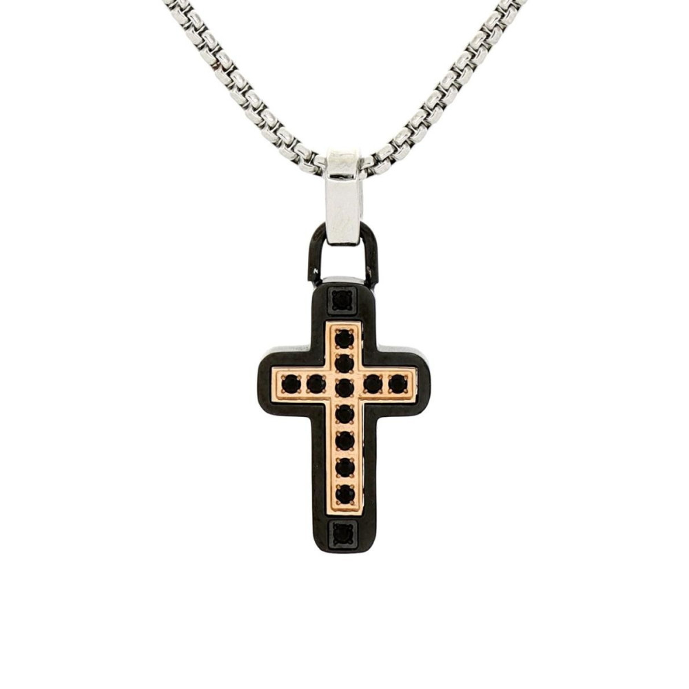 PENDENTE UOMO IN ACCIAIO CON CROCE MM 29x12 CATENA CM 45+5