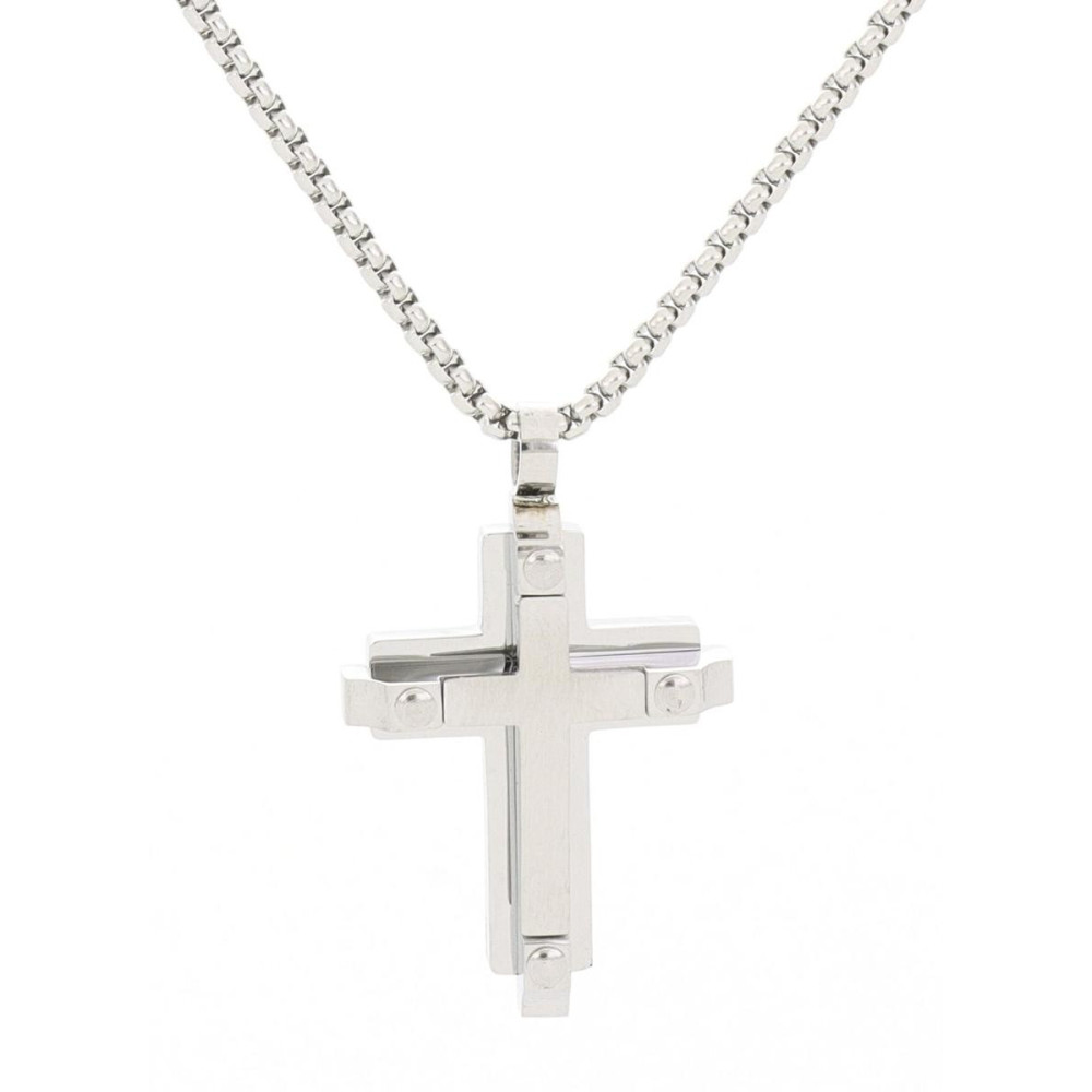 PENDENTE UOMO IN ACCIAIO CON CROCE MM 30x19 CATENA CM 45+5