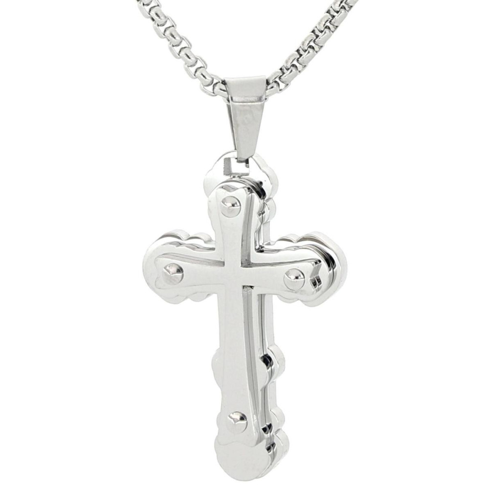 PENDENTE UOMO CROCE IN ACCIAIO CATENA CM 55