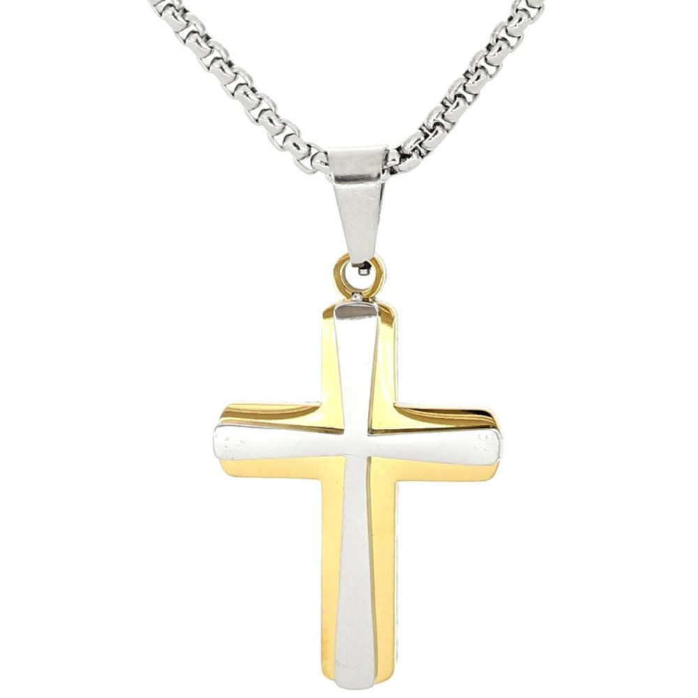 PENDENTE UOMO CROCE IN ACCIAIO CATENA CM 55