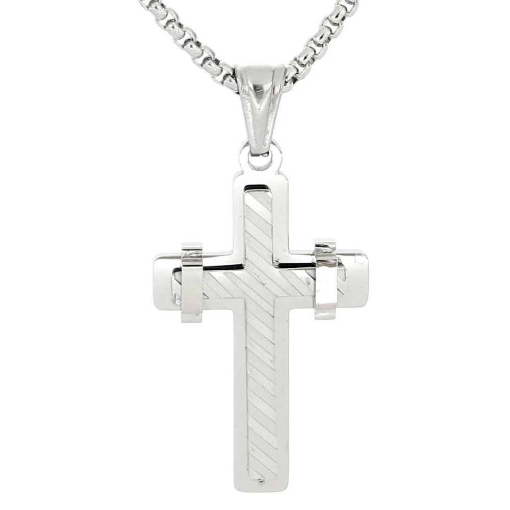 PENDENTE UOMO CROCE IN ACCIAIO CATENA CM 55