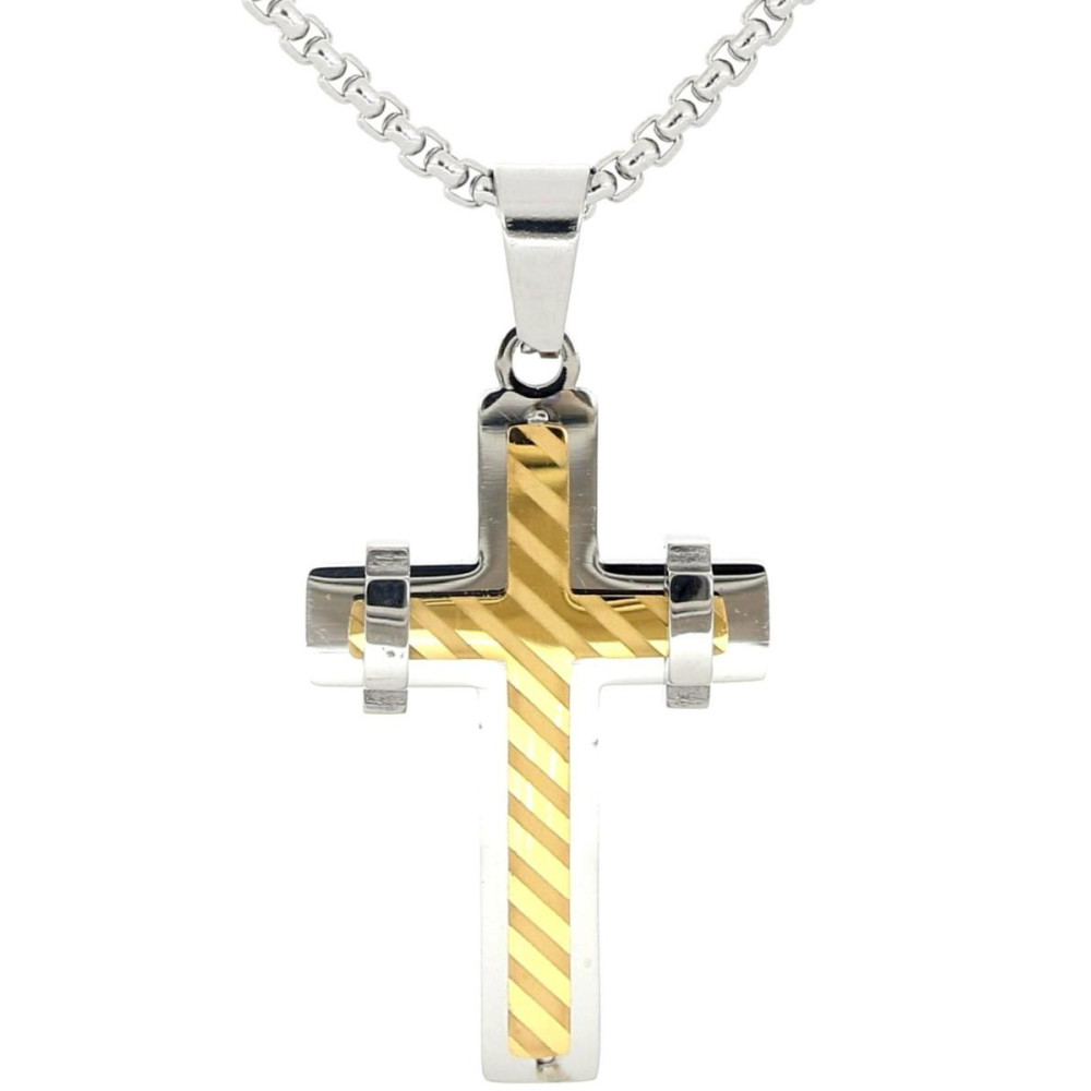 PENDENTE UOMO CROCE IN ACCIAIO CATENA CM 55