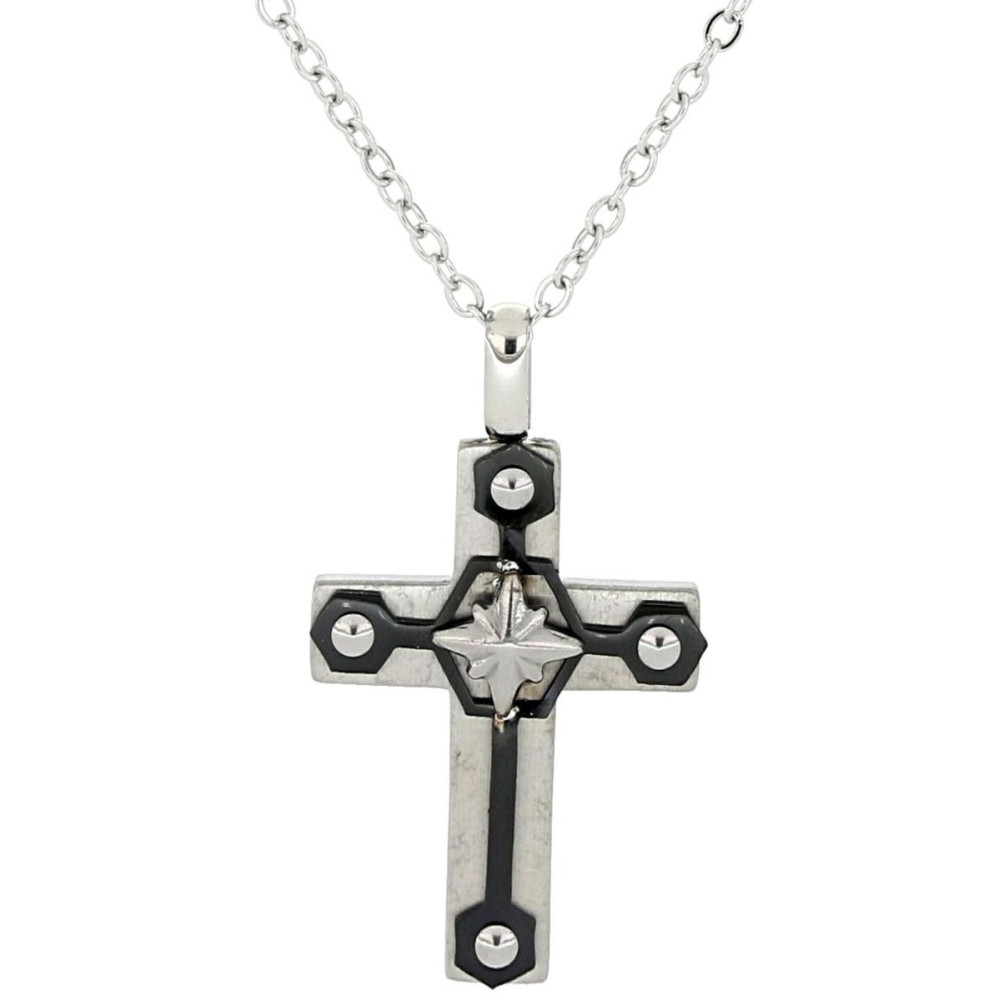 PENDENTE UOMO CROCE IN ACCIAIO CATENA CM 55