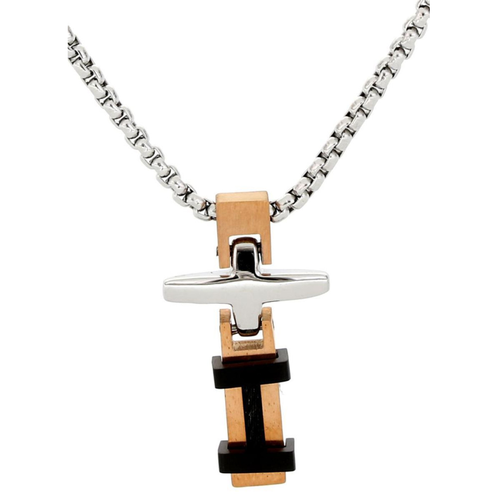 PENDENTE UOMO IN ACCIAIO CON CROCE ROSE'