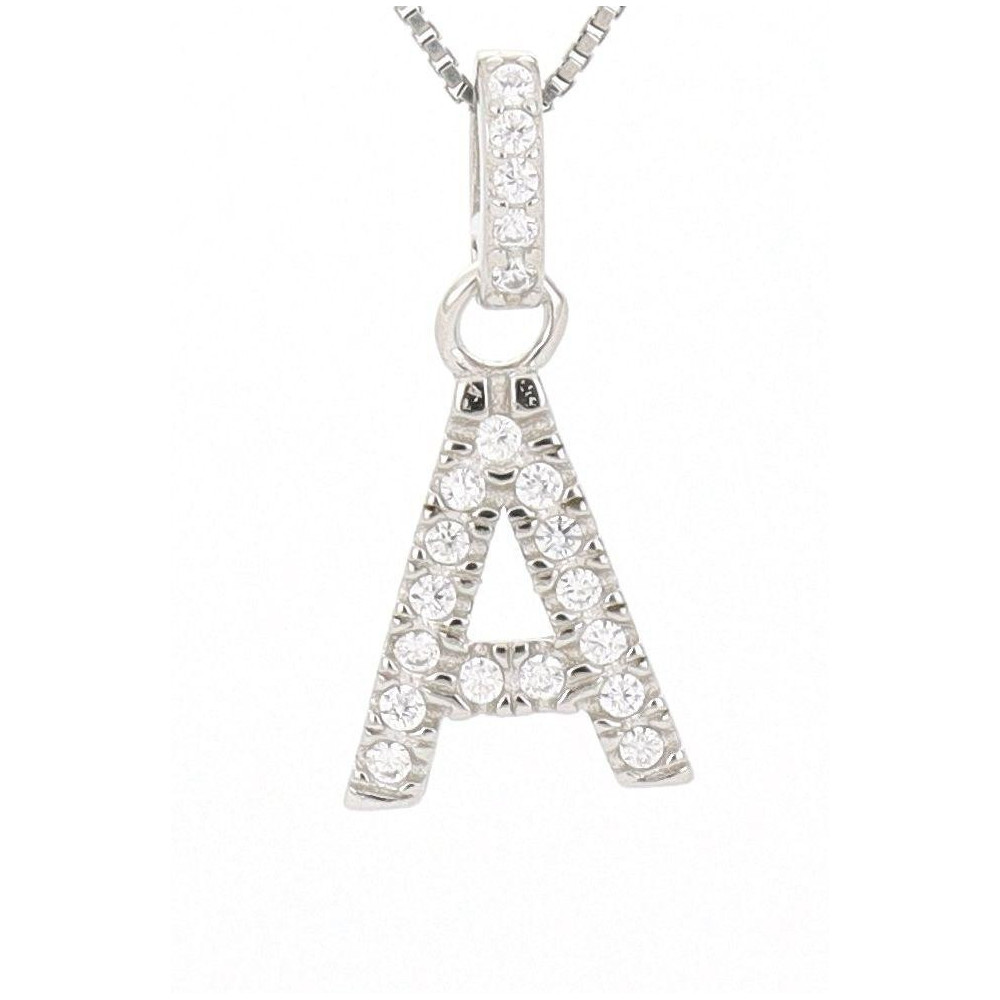 PENDENTE LETTERA A MM 14 IN ARGENTO ZIRCONATO + CATENA