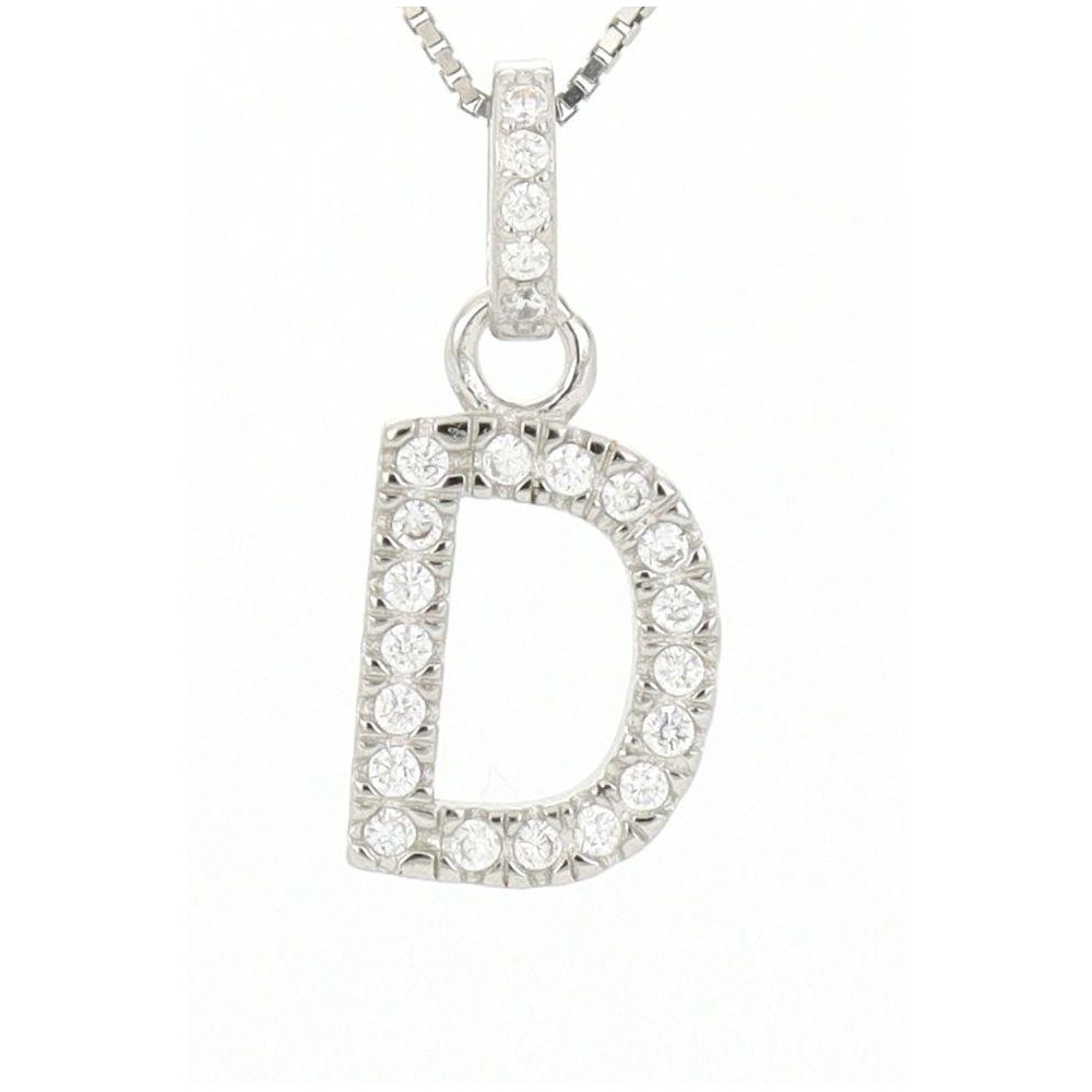 PENDENTE LETTERA D MM 14 IN ARGENTO ZIRCONATO + CATENA