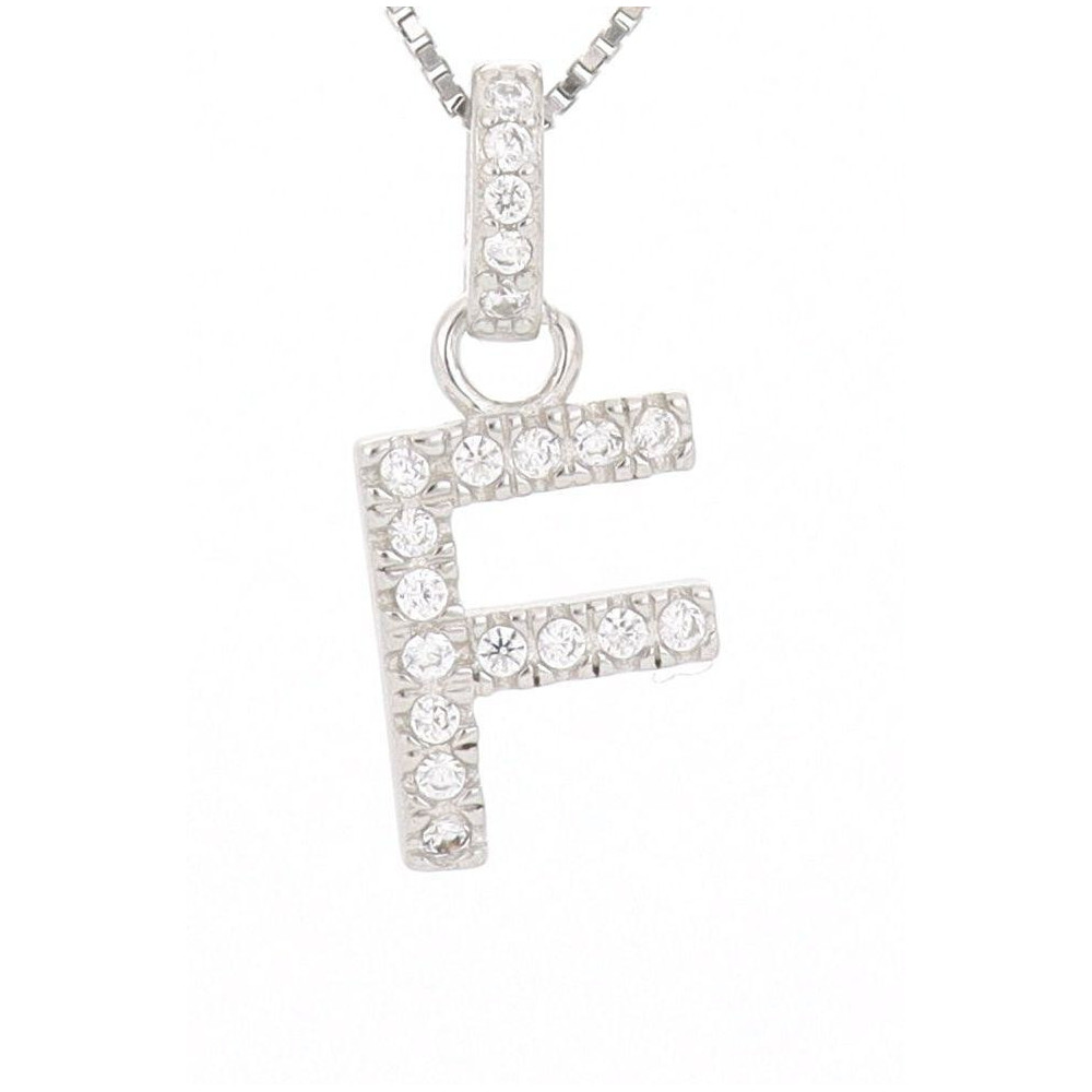 PENDENTE LETTERA F MM 14 IN ARGENTO ZIRCONATO + CATENA
