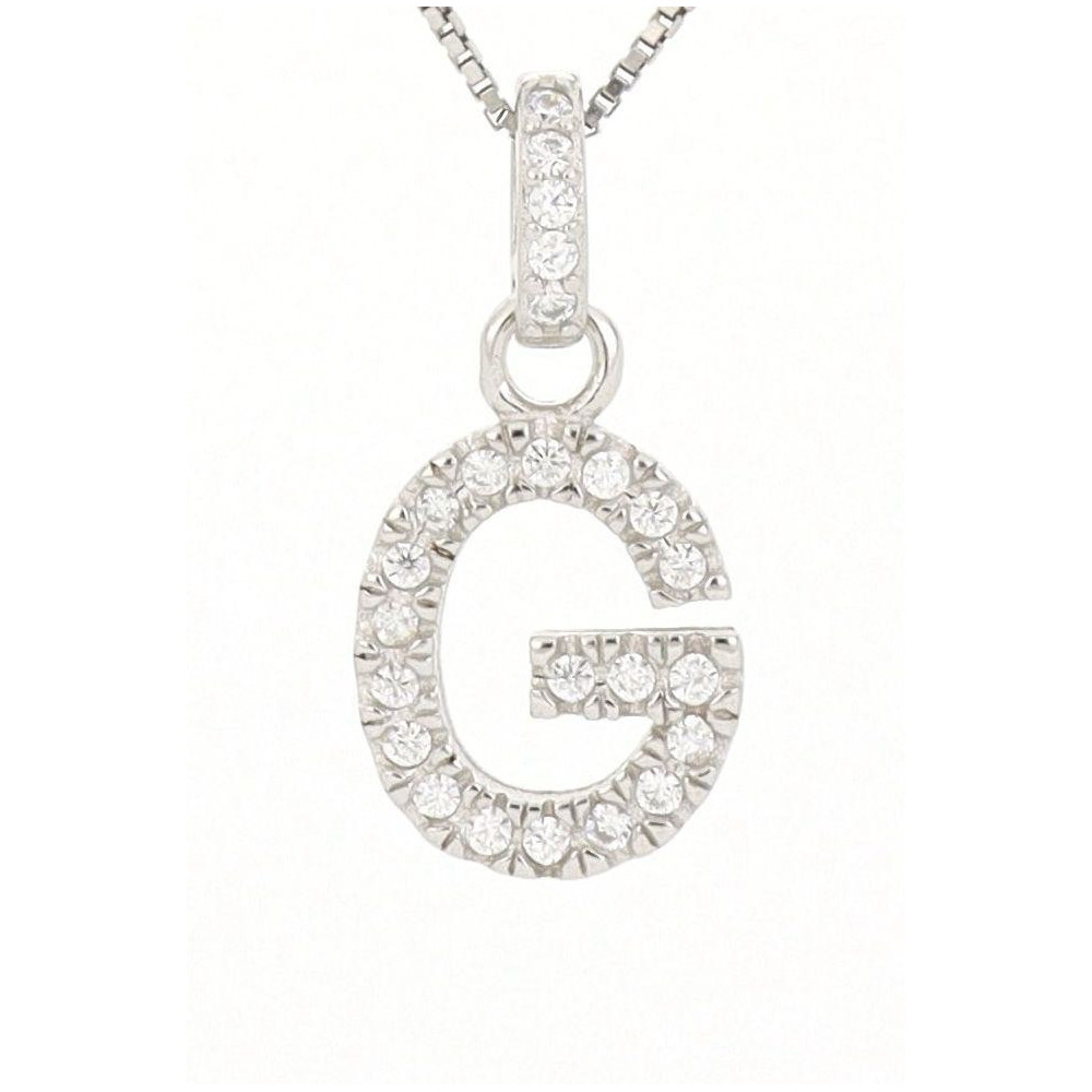 PENDENTE LETTERA G MM 14 IN ARGENTO ZIRCONATO + CATENA