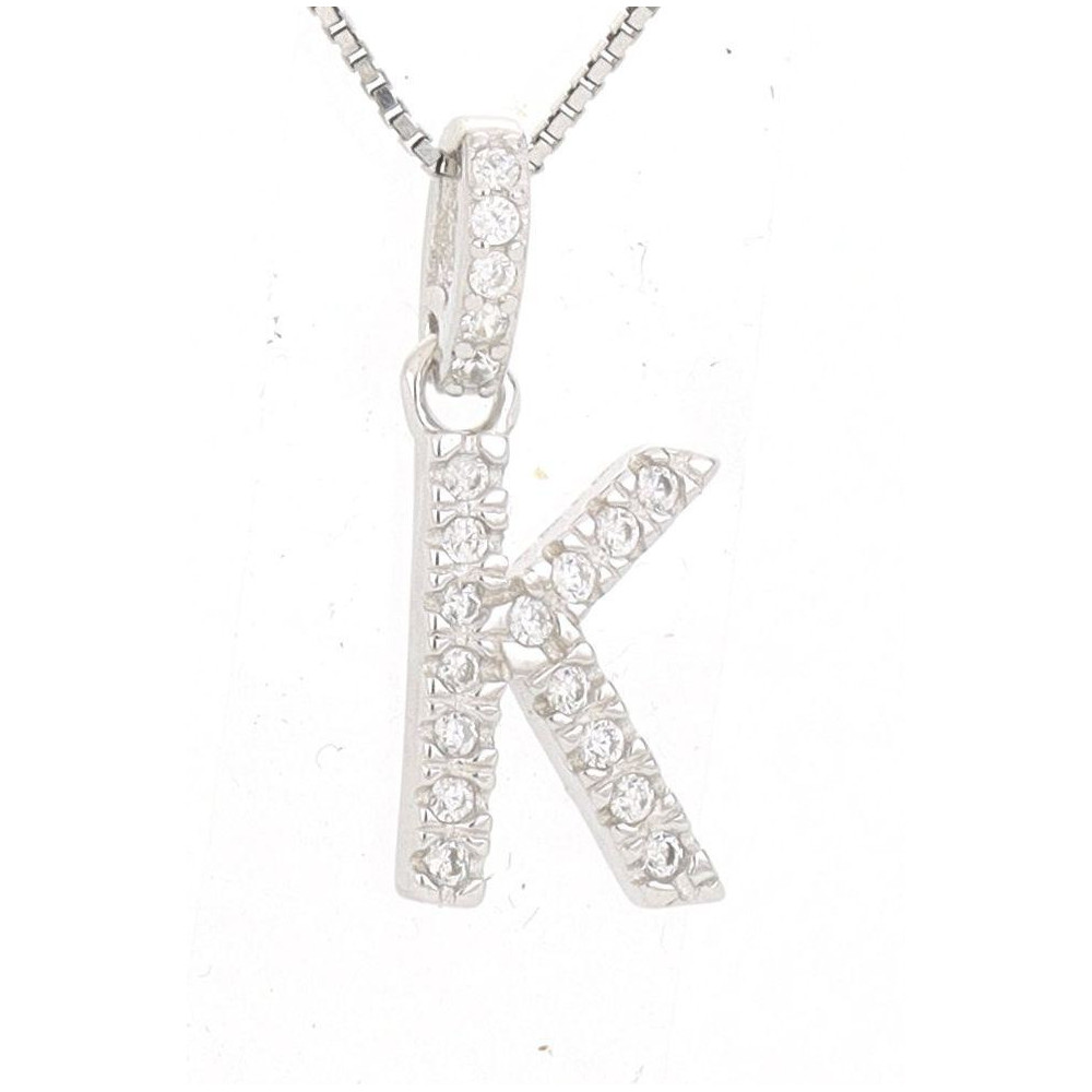 PENDENTE LETTERA K MM 14 IN ARGENTO ZIRCONATO + CATENA