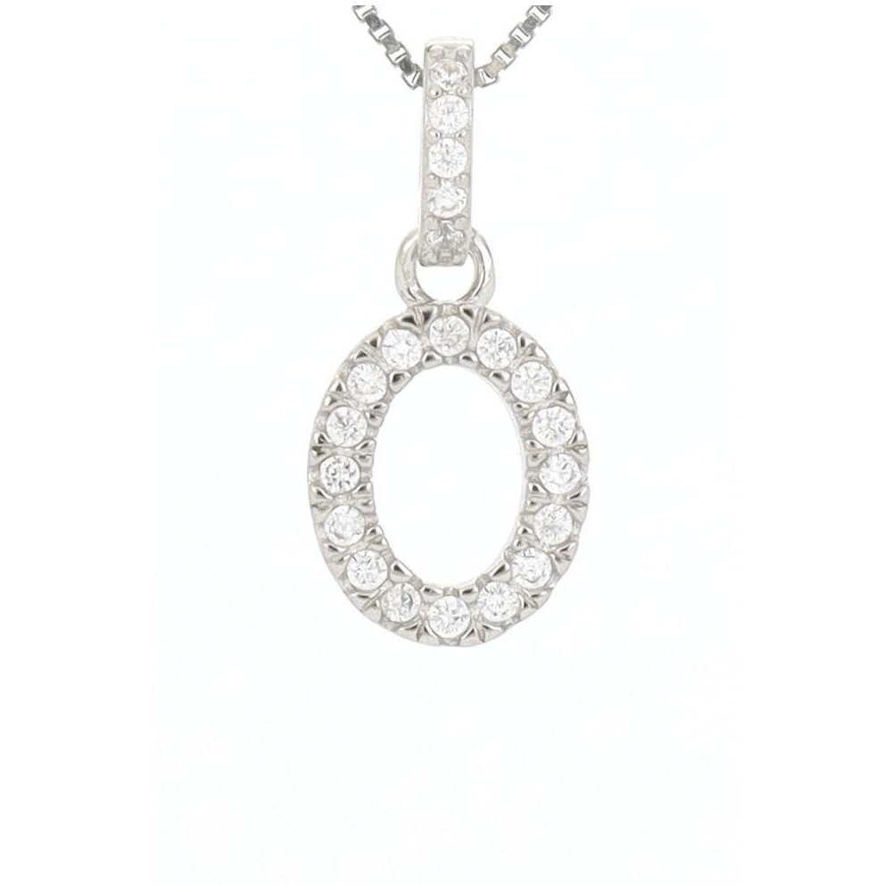 PENDENTE LETTERA O MM 14 IN ARGENTO ZIRCONATO + CATENA