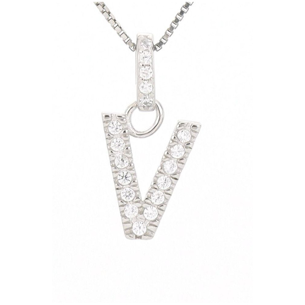 PENDENTE LETTERA V MM 14 IN ARGENTO ZIRCONATO + CATENA