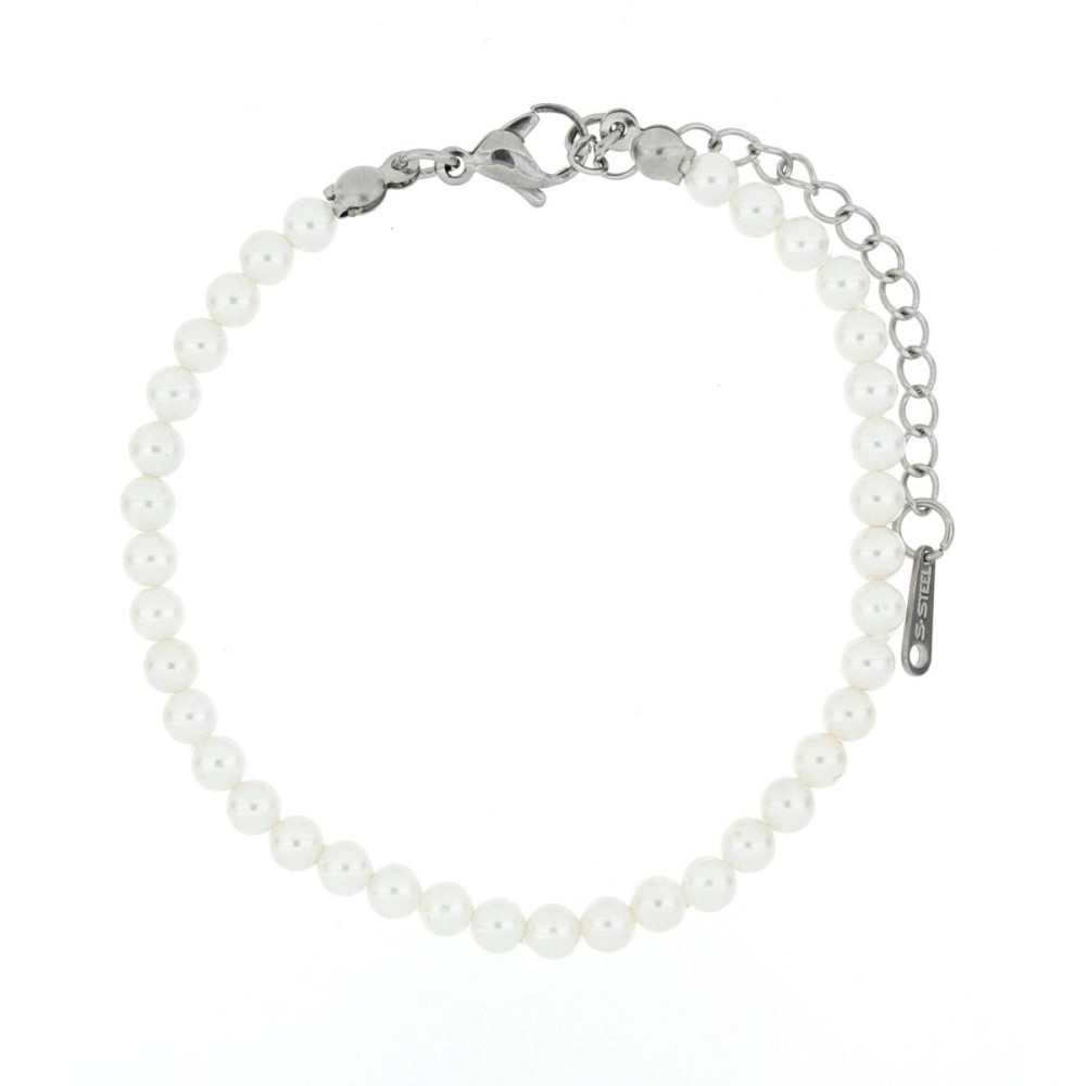 BRACCIALE CM 19+5 PERLA MM 4 IN ACCIAIO