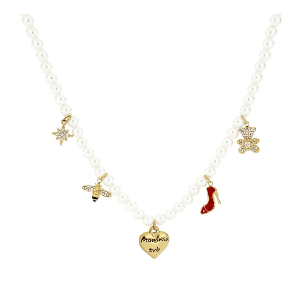 COLLANA 'MAMMA' CM 40+5 PERLA MM 6 IN ACCIAIO