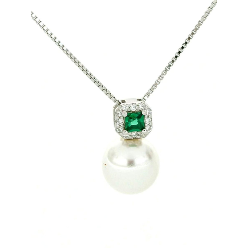 PENDENTE PERLA MM 8 ZIRCONE MM 13 IN ARGENTO 925 CATENA CM 46