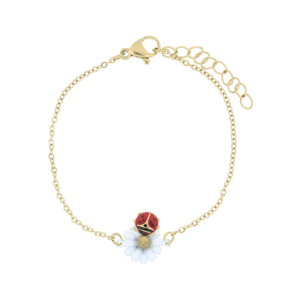 BRACCIALE CM 15+3 FIORE E COCCINELLA MM 12X10 IN ACCIAIO