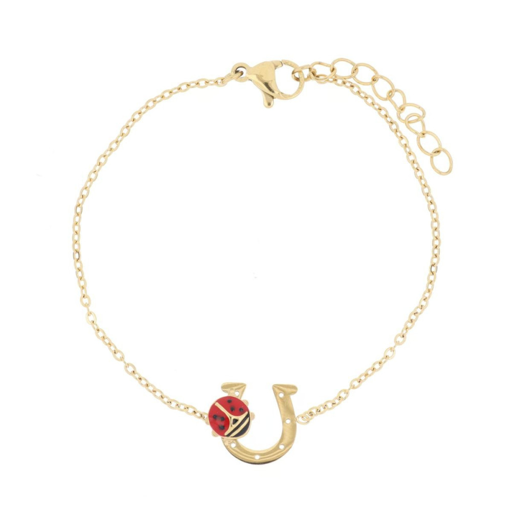 BRACCIALE CM 15+3 FERRO DI CAVALLO E COCCINELLA MM 11 IN ACCIAIO