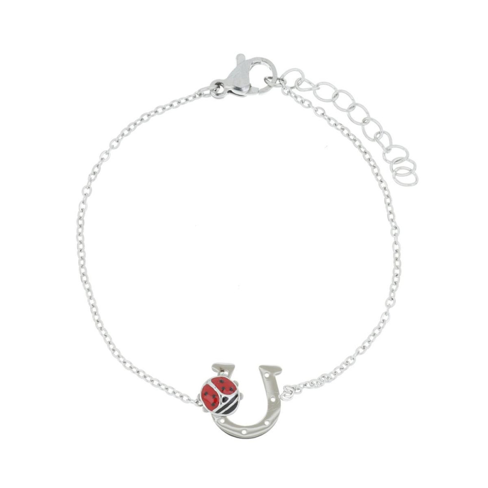 BRACCIALE CM 15+3 FERRO DI CAVALLO E COCCINELLA MM 11 IN ACCIAIO