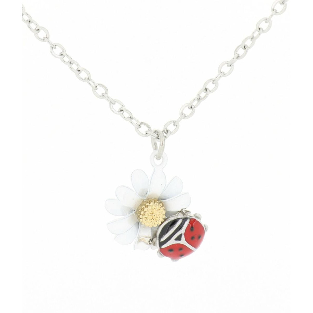 PENDENTE FIORE E COCCINELLA MM 12 E CATENA CM 35+5 IN ACCIAO