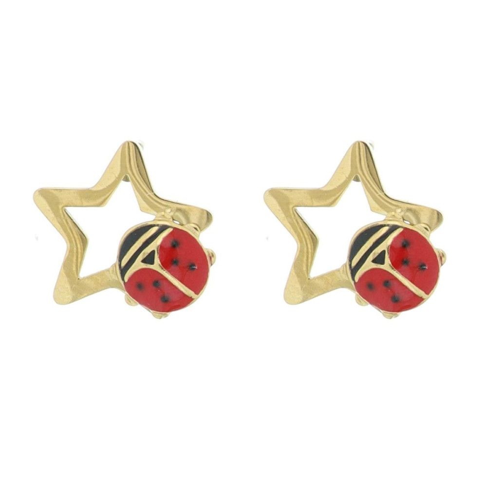 ORECCHINI MM 11X12 PORTAFORTUNA STELLA E COCCINELLA IN ACCIAIO