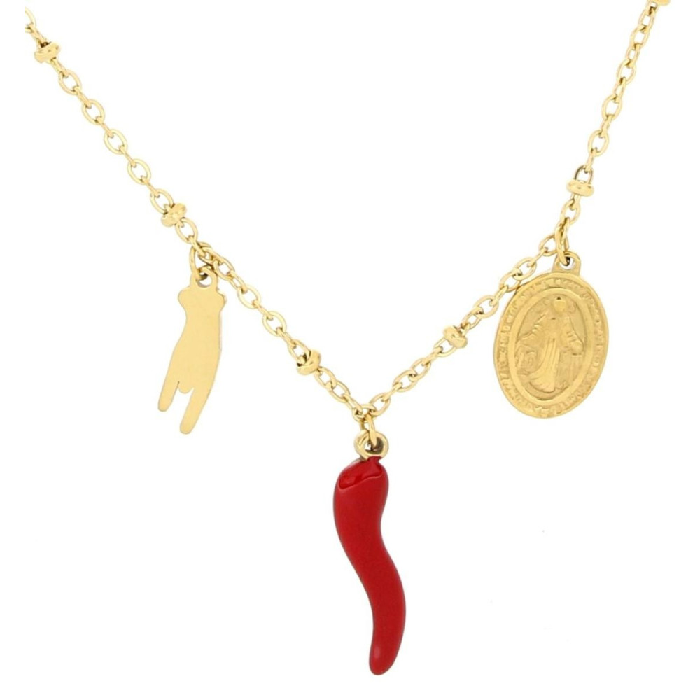 PENDENTE CORNO MM 18 IN ACCIAO CATENA 41+5