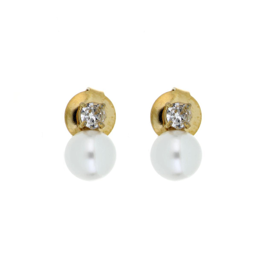 ORECCHINI PUNTO LUCE PERLA CON ZIRCONE MM 6 IN ACCIAIO
