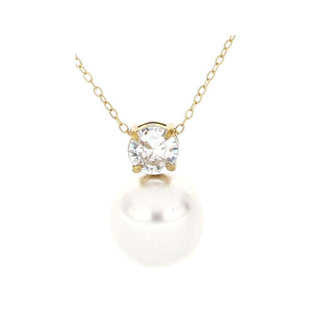 PENDENTE PUNTO LUCE PERLA CON ZIRCONE MM 8 IN ACCIAIO