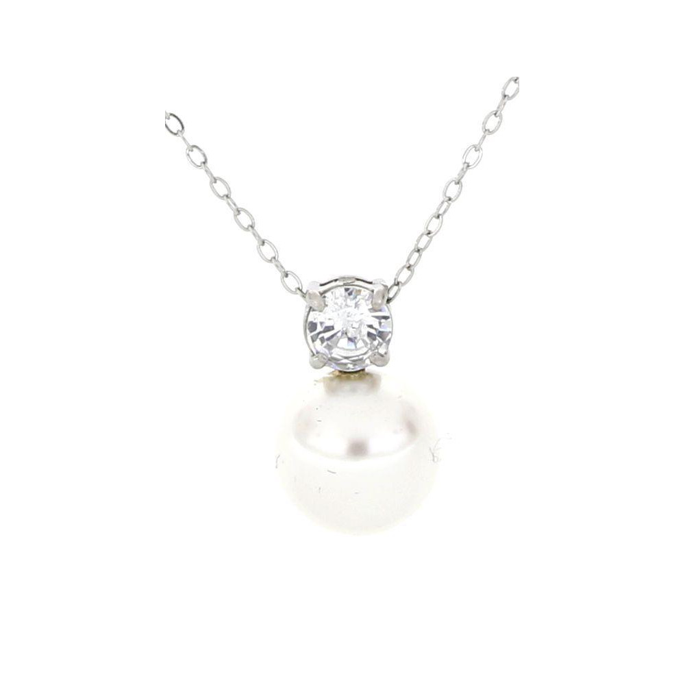 PENDENTE PUNTO LUCE PERLA CON ZIRCONE MM 8 IN ACCIAIO