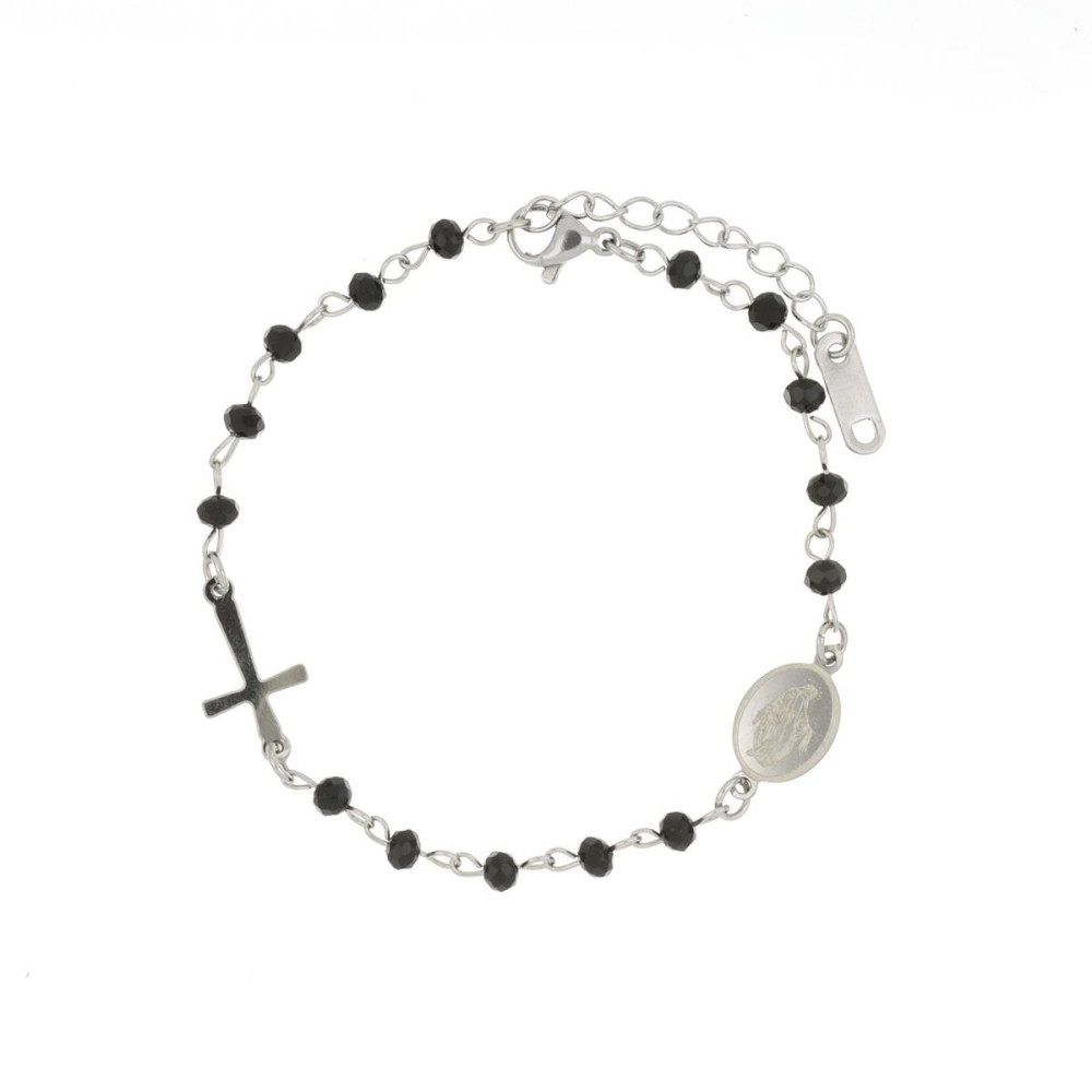 BRACCIALE ROSARIO CM 18+3 CON PIETRE NERE IN ACCIAIO