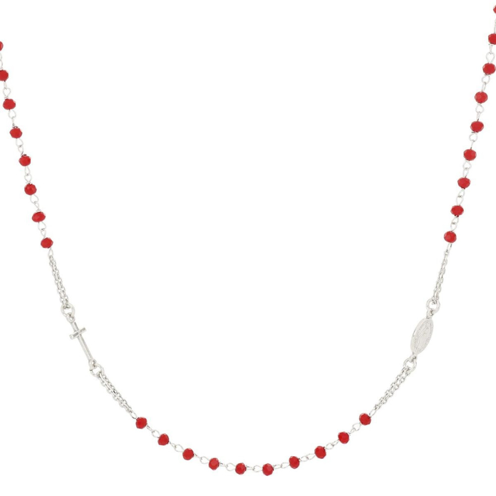 COLLANA CM 50+3 ROSARIO MM 3 IN ARGENTO 925 CON CRISTALLO ROSSO