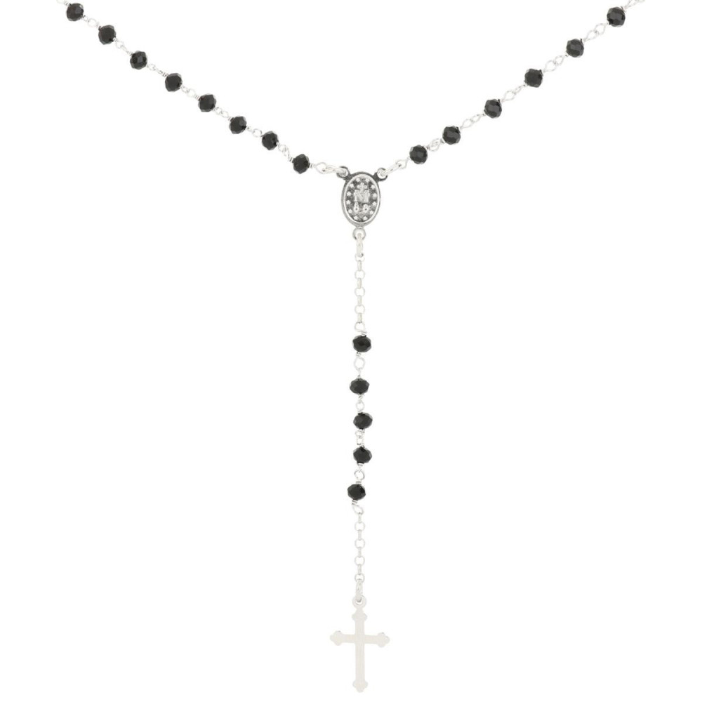 COLLANA CM 50+2 ROSARIO MM 3 IN ARGENTO 925 CRISTALLO NERO