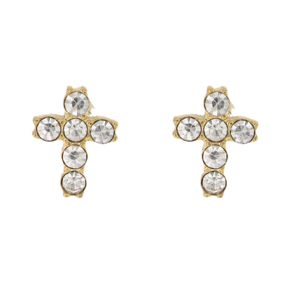 ORECCHINI A LOBO "ADANA" 9MM CROCI CON ZIRCONI IN ACCIAIO