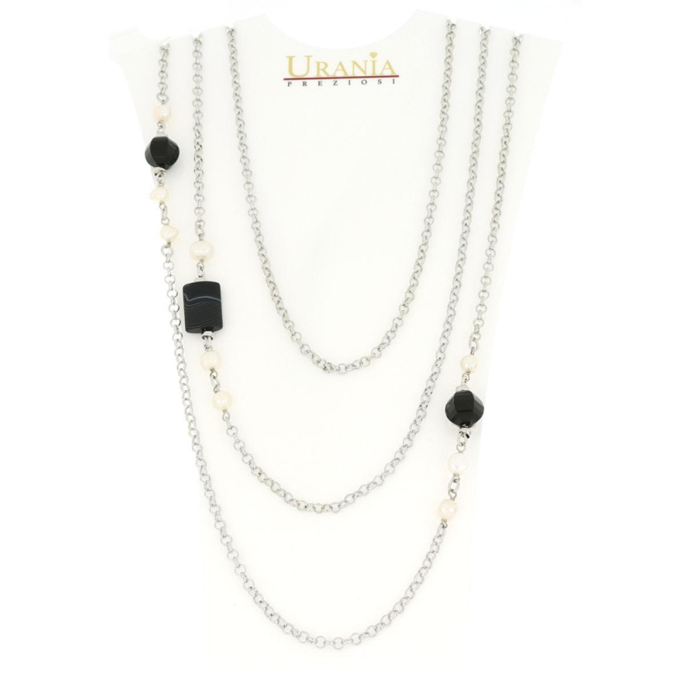 COLLANA "VENERE" RODIATO CM 80 CON PIETRE E PERLE IN OTTONE